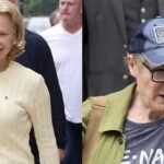Pamela Anderson dhe Liam Neeson u fotografuan së bashku duke dalë nga një hotel, dhe ajo nuk mund ta largonte buzëqeshjen nga fytyra